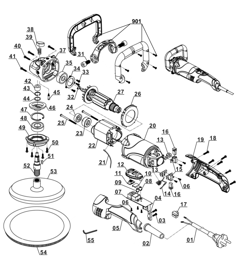 For the ambitious do-it-yourselfer the Einhell angle polisher CC-PO 1100/2 E is the powerful, robust and handy expert polishing and grinding device. It is ideal for polishing of varnished surfaces as well as grinding of wood, plastics and metal. Thanks to its soft grip this device can be handled safely at any time, and operations as polishing of cars can be performed quickly and thoroughly. For varnish care the large additional handle enables best control and precise results. By the finely adjustable electronic speed control the speed of the polishing or grinding attachments can be optimally adapted to the surface being processed. With the practical spindle lock the spindle can be blocked without tools. Thus, the grinding disk on the polisher can be changed quickly and easily. The grinding disk is equipped with a special hook-and-loop fastener in order to fix the polishing and grinding attachments safely on the electric grinder and to prevent entering of dust between disk and grinding paper. The polishing and grinding attachments can be still easily loosened and they can be changed quickly if requested. The comprehensive polishing and grinding accessories consist of 1 foam attachment for e.g. car polishing, 1 synthetic polishing cap and grinding paper disks of 60, 80 and 120 granulation with 1 of each.